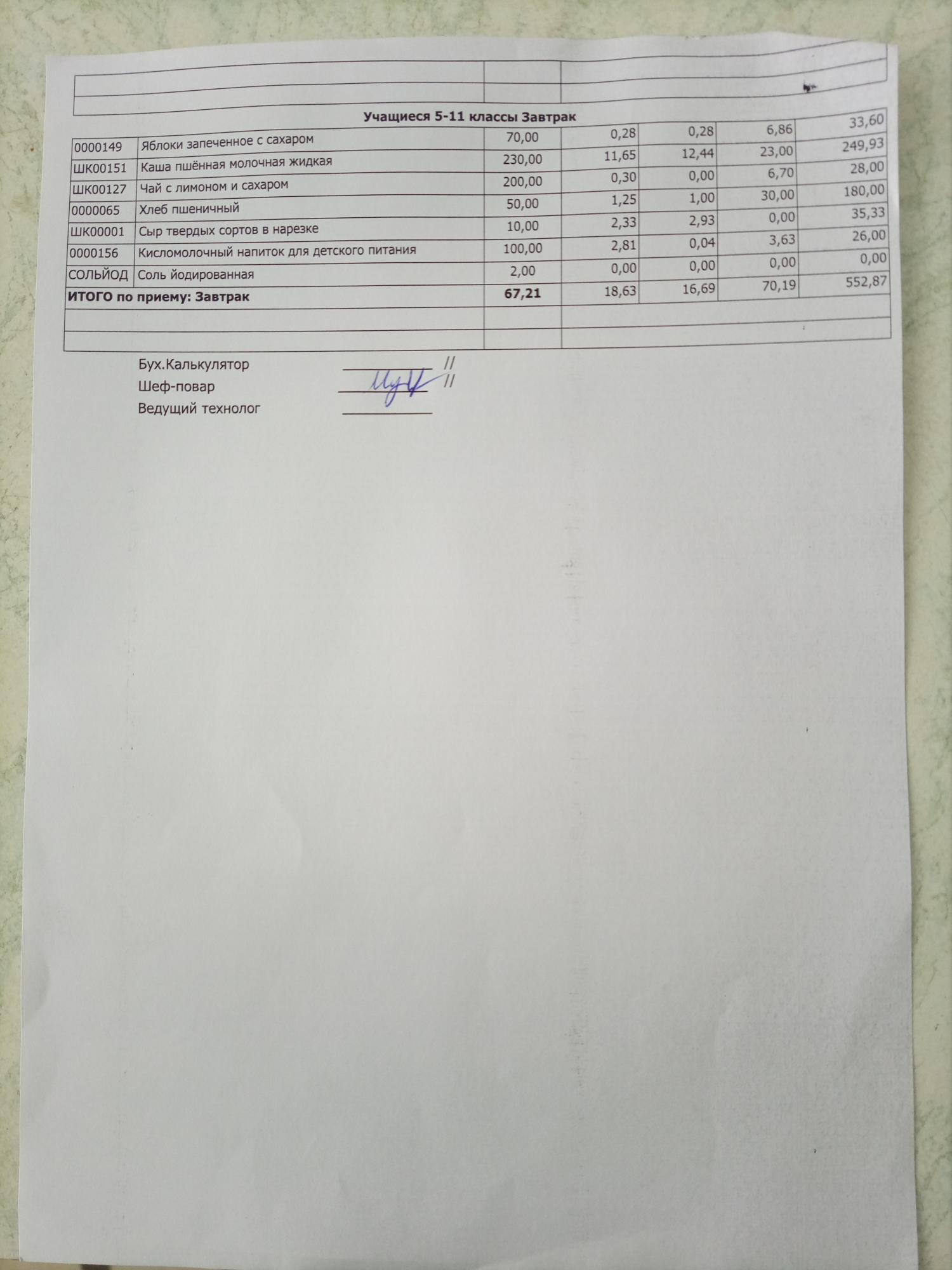 Типовое меню за 2025-2026учебный год